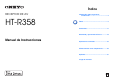 Índice RECEPTOR DE AV HT-R358 Información sobre seguridad e introducción..............................................2 Índice ...............................................................5 Conexiones ...................................................11 Encendido y operaciones básicas..............18 Manual de Instrucciones Operaciones avanzadas ..............................32 Cómo controlar otros componentes ..........44 Apéndice .......................................................