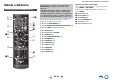Información sobre seguridad e introducción Mando a distancia Cómo controlar el Receptor de AV a b c d ae f ic j d k e Para controlar el receptor de AV, pulse el botón RECEIVER para seleccionar el modo Receiver (Receptor). También podrá emplear el mando a distancia para controlar el reproductor Onkyo para Discos Bluray/DVD, el reproductor de CD y otros componentes. Vea “Introducción de códigos de mando a distancia” para obtener información detallada (➔ página 47).