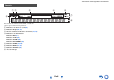 Información sobre seguridad e introducción Panel trasero a b d e c h i f g j a Tomas DIGITAL IN COAXIAL y OPTICAL b Tomas COMPONENT VIDEO IN y OUT c Tomas HDMI IN y OUT d Toma FM ANTENNA y terminal AM ANTENNA e Toma UNIVERSAL PORT f Terminales SPEAKERS (FRONT A, CENTER, SURROUND, SUBWOOFER, FRONT B) i Vídeo compuesto y tomas de audio analógicas (BD/DVD IN, VCR/DVR IN y OUT, CBL/SAT IN, GAME IN, TV/CD IN) j Toma MONITOR OUT V Ver “Conexión del Receptor de AV” para información de conexión (➔ págin