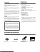 Features Precautions 1. Recording Copyright Recording of copyrighted material for other than personal use is illegal without permission of the copyright holder. 2. AC Fuse The fuse is located inside the chassis and is not user-serviceable. If power does not come on, contact your Onkyo authorized service station. 3. Care From time to time you should wipe the front and rear panels and the cabinet with a soft cloth.