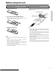 Before using the unit Inserting the batteries 1 Detach the battery cover. Using the remote controller Point the remote controller toward the remote control sensor. The STANDBY indicator lights up when the unit receives a signal from the remote controller. Remote control sensor Receiver STANDBY indicator 2 Insert the two size AA/R6/UM3 batteries. Be sure to match the + and – ends of the batteries with the diagram inside the battery compartment. 30˚ 30˚ 16 3 Attach the battery cover.