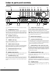 Index to parts and controls Rear panel 1 ANTENNA 2 3 4 FM 75 AM L L DIGITAL INPUT COAXIAL 2 1 VIDEO 2 REMOTE CONTROL IN VIDEO 1 OUT IN DVD MONITOR OUT IN SURROUND SPEAKERS FRONT SPEAKERS B FRONT SPEAKERS A OPTICAL 5 AC OUTLET CENTER SPEAKER L VIDEO R R R S VIDEO IN OUT OUT IN IN IN SURR FRONT CENTER L L SUBWOOFER PRE OUT R R CD TAPE VIDEO 2 VIDEO 1 DVD 678 9 p q SUB WOOFER w For operational instructions, refer to the page indicated in brackets.