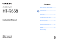 Contents AV RECEIVER HT-R558 Safety Information and Introduction ............2 Table of Contents ...........................................5 Connections .................................................11 Turning On & Basic Operations..................19 Instruction Manual Advanced Operations ..................................39 Controlling Other Components...................52 Appendix .......................................................