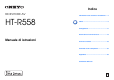Indice RICEVITORE AV HT-R558 Informazioni sulla sicurezza e introduzione ..... 2 Indice ...............................................................5 Collegamenti.................................................11 Accensione e funzioni di base ....................19 Manuale di istruzioni Funzioni avanzate ........................................39 Controllo di altri componenti ......................52 Appendice .....................................................
