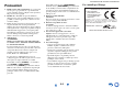 Informazioni sulla sicurezza e introduzione Precauzioni 1. Diritti d'autore delle registrazioni—A eccezione del solo uso per scopo personale, la copia del materiale protetto dal diritto d'autore è illegale senza il permesso del possessore del copyright. 2. Fusibile AC—Il fusibile AC presente all'interno dell'apparecchio non è riparabile dall'utente. Se non è possibile accendere l'apparecchio, contattare il vostro rivenditore Onkyo. 3. Cura—Spolverate di tanto in tanto l'apparecchio con un panno morbido.