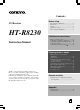 Contents Before using AV Receiver HT-R8230 Important Safety Instructions ........................... 2 Precautions ........................................................ 3 Features ............................................................. 4 Supplied accessories ......................................... 4 Before Using the HT-R8230 ............................ 5 Facilities and connections Instruction Manual Index to parts and controls ...............................
