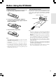 Using the remote controller with your other AV components CD mode Tape mode (RCVR/TAPE) 3. 2. CD 2. RCVR/TAPE 4. DVD 3. Tape deck operation buttons operation buttons 1. CD input 1. TAPE input selector : Power On/Off. : Starts playback of CD. Stops playback, fast forward or fast reverse. Fast forwards of CD. Fast reverses of CD. Lets playback pause temporarily. Skips to the beginning of the next track. Skips to the beginning of the current or previous track.