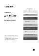 Contents Introduction ...................................2 AV Receiver Connection ..................................15 HT-RC160 Turning On & First Time Setup .....37 Instruction Manual Basic Operations.........................50 Using the Listening Modes ........59 Advanced Setup ..........................66 Zone 2 .........................................82 Controlling Other Components ....86 Thank you for purchasing an Onkyo AV Receiver.