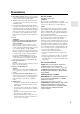 HTP-770_EnFrEs.book Page 3 Wednesday, July 29, 2009 10:07 AM Precautions 1. AC Fuse—The fuse is located inside the chassis and is not user-serviceable. If power does not come on, contact your Onkyo authorized service station. 2. Care—From time to time you should wipe off the cabinet with a soft cloth. For heavier dirt, dampen a soft cloth in a weak solution of mild detergent and water, wring it out dry, and wipe off the dirt. Following this, dry immediately with a clean cloth.