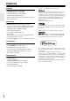 Precautions 1. Recording Copyright—Unless it’s for personal use only, recording copyrighted material is illegal without the permission of the copyright holder. 2. AC Fuse—The AC fuse inside the unit is not userserviceable. If you cannot turn on the unit, contact your Onkyo dealer. 3. Care—Occasionally you should dust the unit all over with a soft cloth. For stubborn stains, use a soft cloth dampened with a weak solution of mild detergent and water. Dry the unit immediately afterwards with a clean cloth.