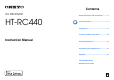 Contents AV RECEIVER HT-RC440 Safety Information and Introduction ............2 Table of Contents ...........................................5 Connections .................................................11 Turning On & Basic Operations..................18 Instruction Manual Advanced Operations ..................................37 Controlling Other Components...................51 Appendix .......................................................