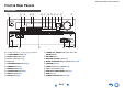 Safety Information and Introduction Rear Panel a b c h d i e f g jkl a DIGITAL IN COAXIAL and OPTICAL jacks b COMPONENT VIDEO IN and OUT jacks c ETHERNET port i Composite video and analog audio jacks (BD/DVD IN, CBL/SAT IN, GAME IN, PC IN, TV/CD IN) d FM ANTENNA jack and AM ANTENNA terminal j ZONE 2 LINE OUT jacks e HDMI IN and OUT jacks k SUBWOOFER PRE OUT jack f SPEAKERS terminals (CENTER, FRONT, SURROUND) l MONITOR OUT V jack g Power cord See “Connecting the AV Receiver” for connectio