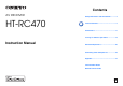 Contents AV RECEIVER HT-RC470 Safety Information and Introduction ............2 Table of Contents ...........................................5 Connections .................................................11 Turning On & Basic Operations..................19 Instruction Manual Advanced Operations ..................................45 Controlling Other Components...................70 Appendix .......................................................