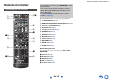 Safety Information and Introduction Remote Controller Controlling the AV Receiver a b gc To control the AV receiver, press RECEIVER to select Receiver mode. You can also use the remote controller to control Onkyo Blu-ray Disc/DVD player, CD player, and other components. See “Entering Remote Control Codes” for more details (➔ page 73). For detailed information, see the pages in parentheses.
