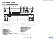Safety Information and Introduction Rear Panel a bc d i e j g f k a DIGITAL IN COAXIAL and OPTICAL jacks b COMPONENT VIDEO IN and OUT jacks c USB port h l m j Composite video and analog audio jacks (BD/DVD IN, CBL/SAT IN, STB/DVR IN, GAME IN, PC IN, TV/CD IN) d ETHERNET port k MONITOR OUT V jack e FM ANTENNA jack and AM ANTENNA terminal l SUBWOOFER PRE OUT jacks f HDMI IN and HDMI output (HDMI OUT MAIN and HDMI OUT SUB) jacks m ZONE 2/ZONE 3 LINE OUT jacks g SPEAKERS terminals (CENTER, FRO