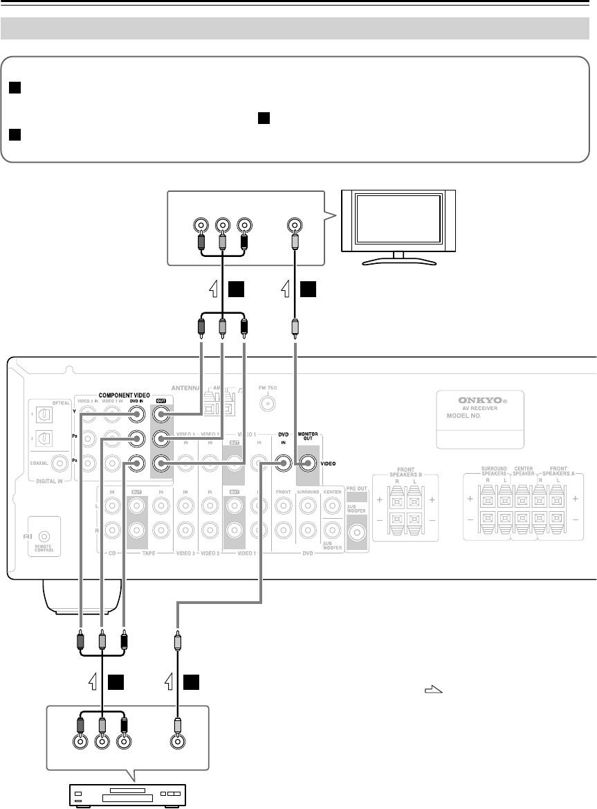 VIDEO DVD IN jacks. And connect the AV receiver’s COMPONENT VIDEO OUT jacks to your TV. This will