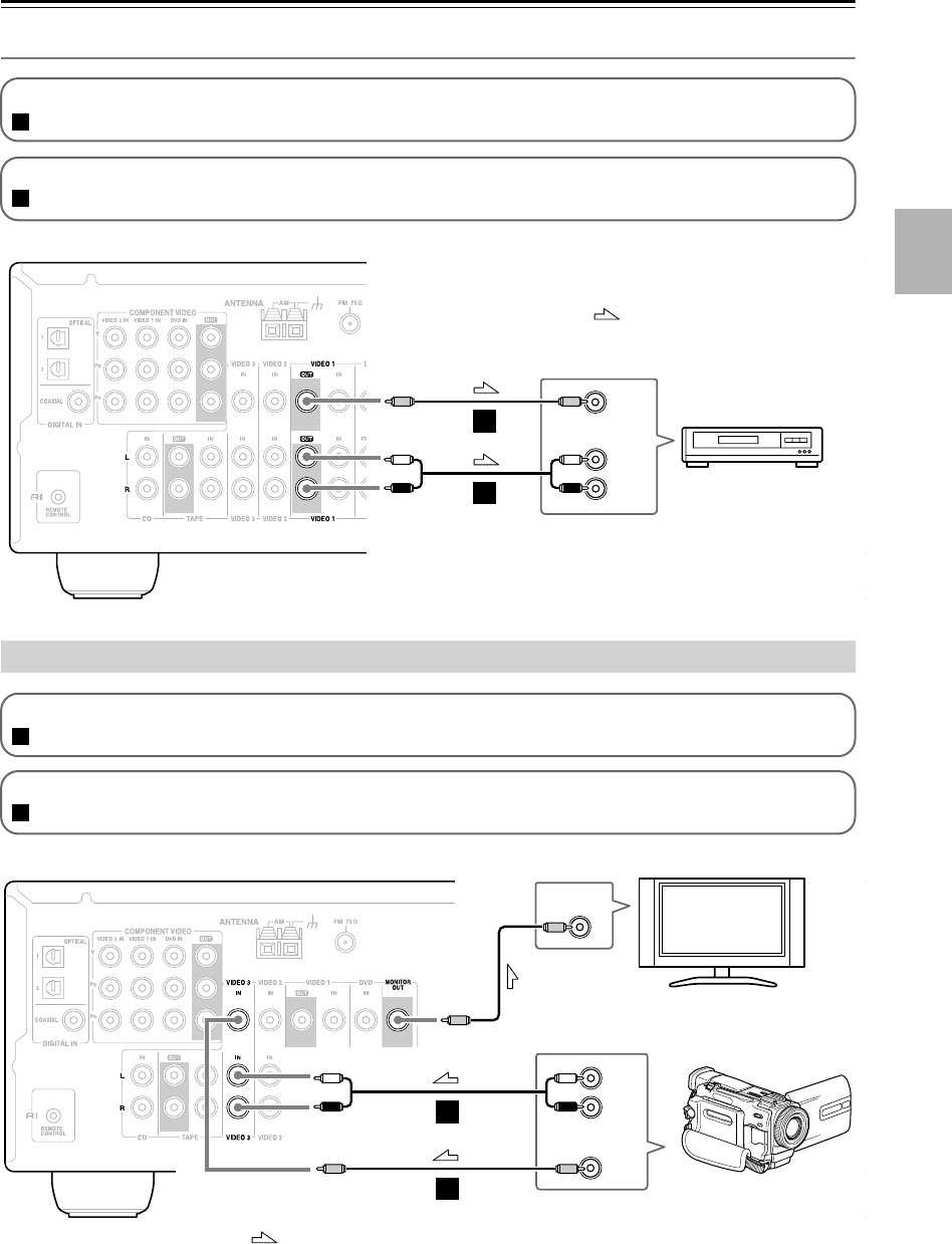 Connect your camcorder’s audio output jack to the AV receiver’s VIDEO 3 IN L/R jacks.
