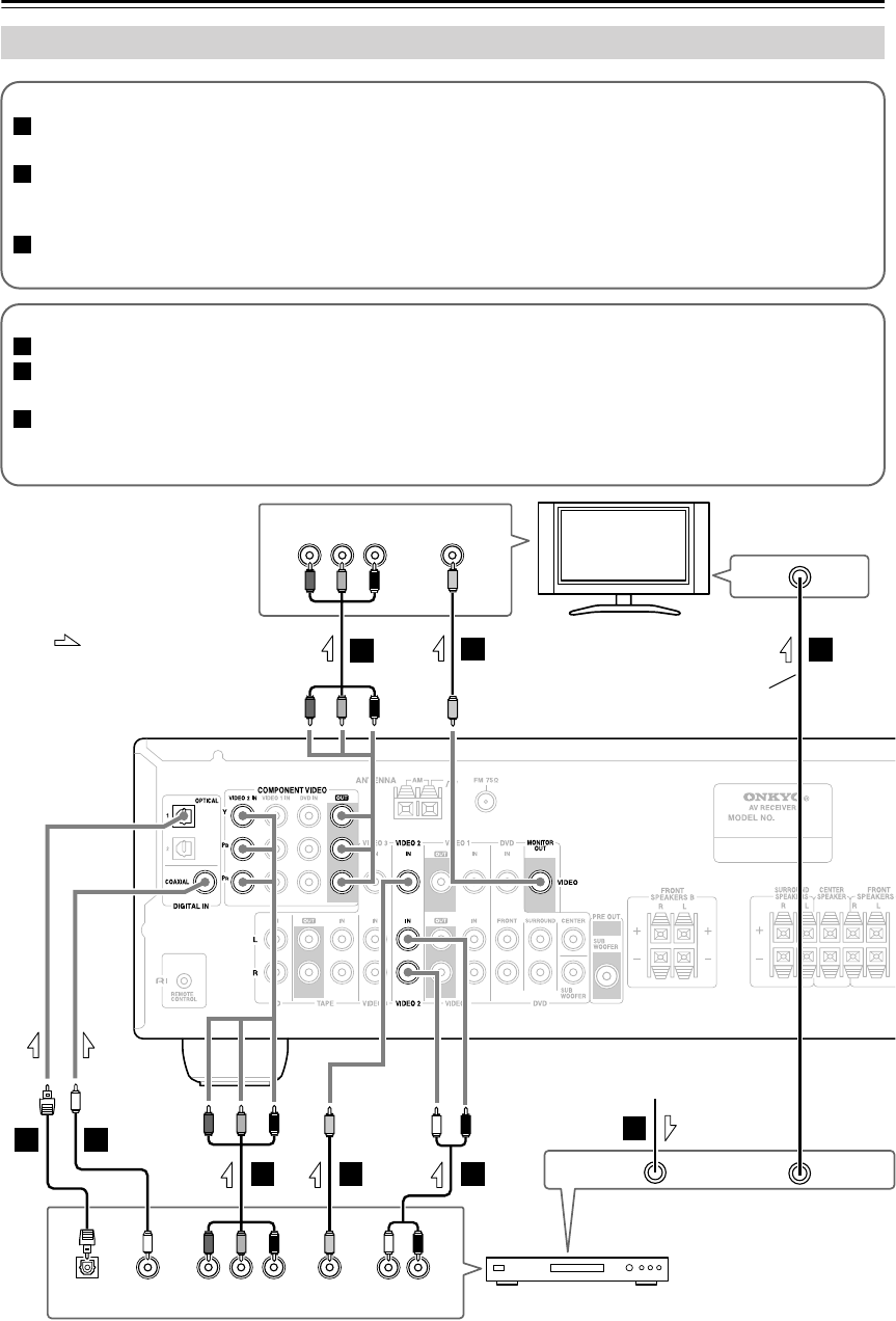 receiver’s COMPONENT VIDEO VIDEO 2 IN jacks, and connect the AV receiver’s COMPONENT VIDEO