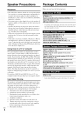 Contents Installing the Batteries Introduction Important Safety Instructions ......................................... Precautions ....................................................................... • ff the remote controller .......... doesn't work reliably, try replacing the batteries. • Don't mix new' and old batteries or different types of batteries.