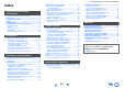 Informazioni sulla sicurezza e introduzione Display S ab c d jklm j d Per informazioni dettagliate, fare riferimento alle pagine riportate tra parentesi. a Indicatore Z2 (Zona 2) (54) b Indicatore 3D Questo si accende quando viene rilevato un segnale ingresso 3D. c Indicatore cuffie (39) d 1, 3 e indicatori cursore (21) e Indicatori del modo di ascolto e dei formati (32) f Indicatore Audyssey (29, 48) Indicatore Dynamic EQ (48) Indicatore Dynamic Vol (48) g Indicatore M.