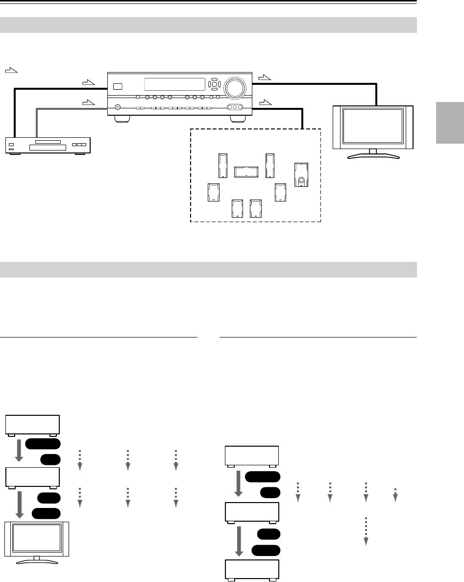 By connecting both the audio and video outputs of your DVD player and other AV components to the AV receiver, you