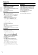 Table des matères Introduction Remarques importantes pour votre sécurité ................ 2 Précautions....................................................................... 3 Accessoires fournis......................................................... 4 Fonctionnalités................................................................. 6 Panneaux avant et arrière ............................................... 8 Panneau avant ............................................................... 8 Écran ...........