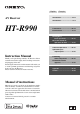 English AV Receiver Français Introduction .............................En-2 Introduction ..............................Fr-2 HT-R990 Connections...........................En-12 Branchements ........................Fr-12 Turning On & Basic Operations ..............En-21 Mise sous tension et opérations de base ............Fr-21 Advanced Operations ...........En-41 Opérations plus sophistiquées.....................Fr-41 Instruction Manual Thank you for purchasing an Onkyo AV Receiver.