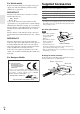 Precautions 1. Recording Copyright—Unless it’s for personal use only, recording copyrighted material is illegal without the permission of the copyright holder. 2. AC Fuse—The AC fuse inside the unit is not userserviceable. If you cannot turn on the unit, contact your Onkyo dealer. 3. Care—Occasionally you should dust the unit all over with a soft cloth. For stubborn stains, use a soft cloth dampened with a weak solution of mild detergent and water. Dry the unit immediately afterwards with a clean cloth.