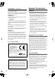 Precautions 1. Recording Copyright—Unless it’s for personal use only, recording copyrighted material is illegal without the permission of the copyright holder. 2. AC Fuse—The AC fuse inside the unit is not userserviceable. If you cannot turn on the unit, contact your Onkyo dealer. 3. Care—Occasionally you should dust the unit all over with a soft cloth. For stubborn stains, use a soft cloth dampened with a weak solution of mild detergent and water. Dry the unit immediately afterwards with a clean cloth.