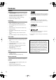 Troubleshooting—Continued The AV receiver contains a microcomputer for signal processing and control functions. In very rare situations, severe interference, noise from an external source, or static electricity may cause it to lockup. In the unlikely event that this happens, unplug the power cord from the wall outlet, wait at least five seconds, and then plug it back in again. Onkyo is not responsible for damages (such as CD rental fees) due to unsuccessful recordings caused by the unit’s malfunction.