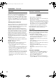 DV-SP405_En.book Page 11 Tuesday, May 29, 2007 2:48 PM Introduction—Continued PC-created disc compatibility Handling Discs Discs recorded using a personal computer may not be playable in this unit due to the setting of the application software used to create the disc. In these particular instances, check with the software publisher for more detailed information. Discs recorded in packet write mode (UDF format) are not compatible with this player.