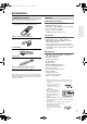 DV-SP405_En.book Page 6 Tuesday, May 29, 2007 2:48 PM Table of Contents Basic Operation Advanced Operation Overview Playback Techniques Important Safety Instructions...............................2 Precautions .........................................................3 Introduction..........................................................7 Supplied Accessories ......................................7 Features ..........................................................7 Disc Notes .........................