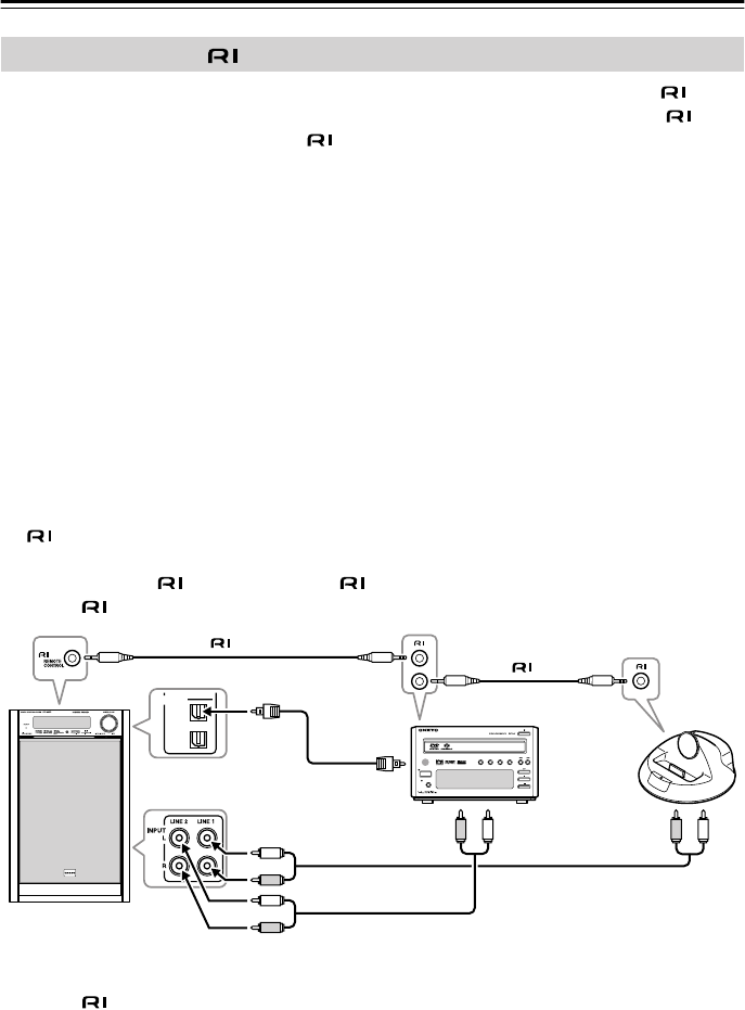 The following diagram shows how to connect an Onkyo DVD player and RI Dock with iPod to