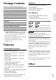 Package Contents Make sure you have the following items: Sound system controller (LAP-301) Remote controller (RC-858S) Subwoofer • Wireless Design for Free Setting and Powerful Sound • Powered Bass Reflex Design • 6-1/2 inch (16 cm) Cone AC adapter and Power cord*1 (➔ page 16) Stereo mini plug cable 5 ft. (1.5 m) Front Speakers Optical digital audio cable 5 ft. (1.5 m) Front speakers (SLM-301) Speaker stand × 2 Speaker cable 10 ft. (3.