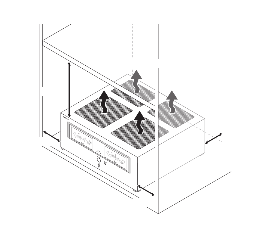 Der Leistungsverstärker ist so entwickelt worden, dass er eine hohe Umwandlungseffizienz hat. Allerdings wird dadurch aber auch seine Temperatur höher als bei anderen Audiogeräte. Daher sollten