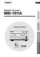 English MiniDisc Recorder Before using MD-101A Connections Instruction Manual MINIDISC RECORDER MULTI JOG EDIT / NO YES DISC LOADIING MECHANISM CD REC MODE DUBBING REC PUSH TO ENTER STANDBY / ON STANDBY DISPLAY MD -101A Operations INPUT Other Information