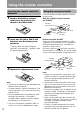 Using the remote controller Inserting the remote controller batteries 1 Remove the battery compartment cover by opening it as shown in the illustration. Using the remote controller Point the remote controller toward the remote control sensor. With the supplied remote controller (RC-475MD) Remote control sensor 30° 30° RC-475MD 2 Insert two AA (R6 or UM-3)-size batteries into the battery compartment.