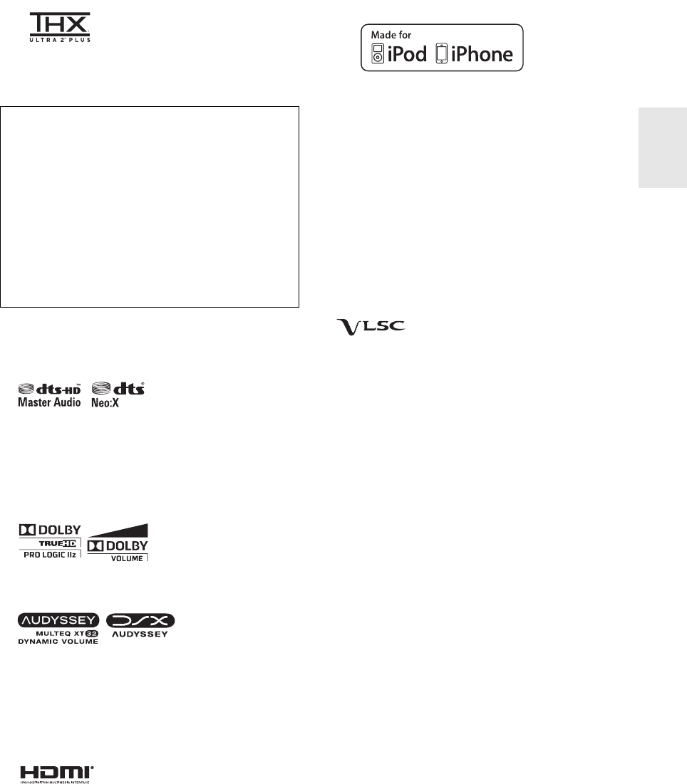 Tillverkad under licens från Audyssey Laboratories™, Inc.