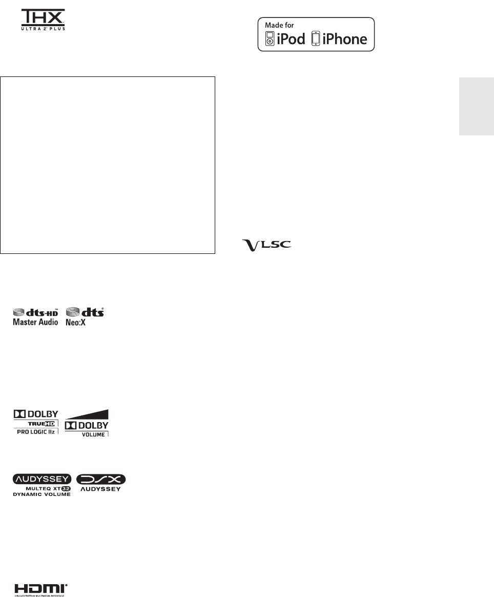 Gefabriceerd onder licentie van Audyssey Laboratories™,