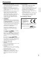 Precauzioni 1. Diritti d'autore delle registrazioni—A eccezione del solo uso per scopo personale, la copia del materiale protetto dal diritto d'autore è illegale senza il permesso del possessore del copyright. 2. Fusibile AC—Il fusibile AC presente all'interno dell'apparecchio non è riparabile dall'utente. Se non è possibile accendere l'apparecchio, contattare il vostro rivenditore Onkyo. 3. Cura—Spolverate di tanto in tanto l'apparecchio con un panno morbido.
