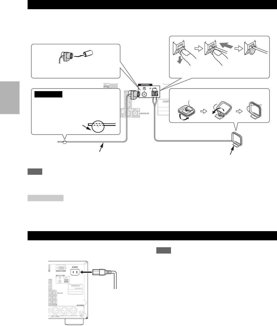 • Tenere l'antenna AM a telaio il più lontano possibile dal AV Controller, dal televisore, dai cavi dei diffusori e da quelli di alimentazione.