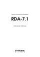 Features Contents ■ RDA-7.1 was designed by Balanced Audio Technology in USA. They are known for producing superbly engineered, meticulously crafted products that recreate music with unmatched fidelity and accuracy. Important Safety Instructions ......................... 2 ■ THX® Ultra2 Certified Contents .............................................................. 3 ■ THX Surround EX™ Capable (7 Channels) Precautions .........................................................