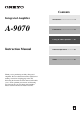 Contents Integrated Amplifier A-9070 Introduction ...................................2 Connections.................................13 Turning On & Basic Operations ......26 Instruction Manual Advanced Operations .................35 Others...........................................41 Thank you for purchasing an Onkyo Integrated Amplifier. Please read this manual thoroughly before making connections and plugging in the unit.