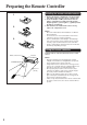 Preparing the Remote Controller Installing the remote controller batteries 1 1. Remove the battery compartment cover by pressing and sliding it away from the remote controller unit. 2. Insert two AA (R6- or UM-3)-size batteries into the battery compartment. Carefully follow the polarity diagram (positive (+) and negative (–) symbols) inside the battery compartment. 3. After batteries are installed and seated correctly, replace the compartment cover.