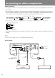Connecting to other components Before connecting • Do not connect the unit’s AC power cord to a wall outlet until you have completed all the other connections. • On each pair of connectors, a red connector (marked R) corresponds to the right channel, and a white connector (marked L) to the left channel. Connect white plugs of audio connection cables to L connectors and connect red plugs of audio connection cables to R connectors .