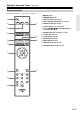 Getting to Know the Tuner—Continued Remote Controller For detailed information, see the pages in parentheses. 1 2 k 3 4 l 5 m 6 a b c d e f g button (15) h i j k l m n SETUP button (18, 19, 20, 24, 31, 34) DIMMER button (31) DISPLAY button (19, 23, 25) INPUT SELECTOR buttons (16, 19, 23) SHUFFL button (23, 24, 25) Control buttons (17, 23, 25, 28) Arrow []/[]/[]/[] and ENTER buttons (16, 19, 23, 31, 34) Number buttons (17) D.