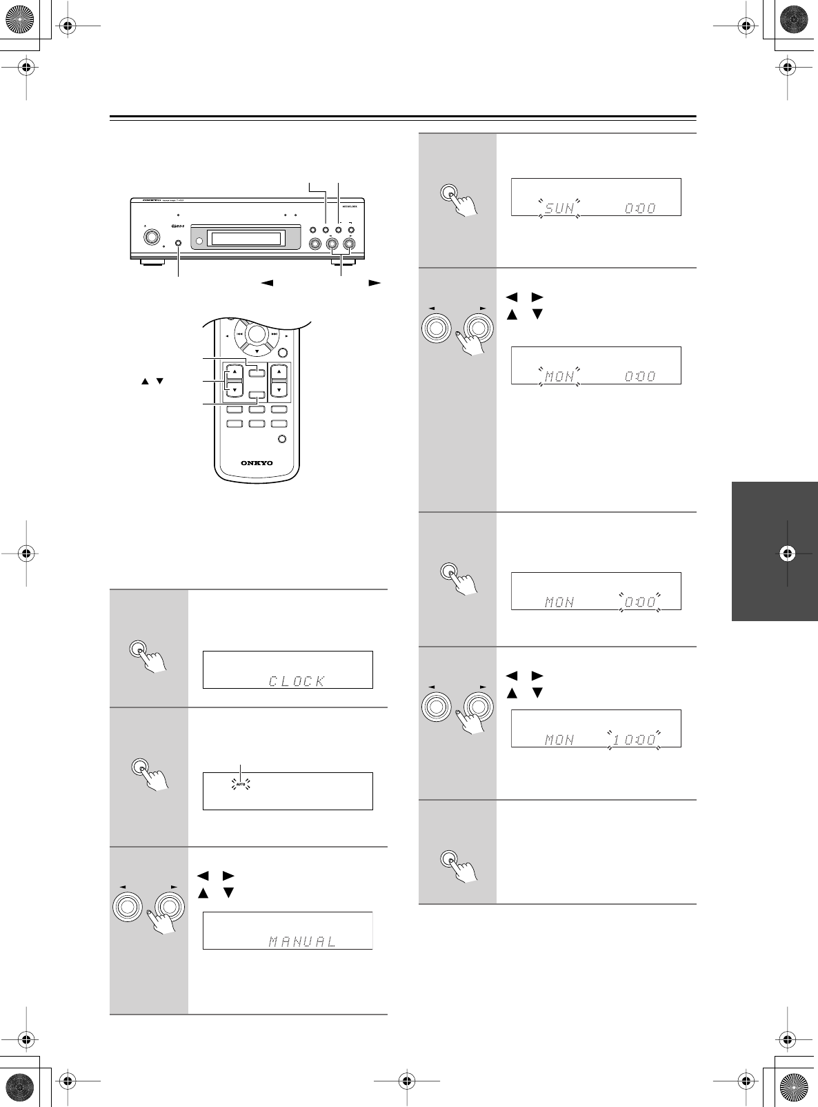The clock can be set from the T-433’s front panel or the