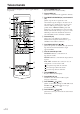 Telecomando—Continua K Tasto DIRECT TUNING (26) Quando si conosce la frequenza della stazione che si desidera ascoltare, è possibile selezionarla immettendo direttamente la frequenza mediante questo tasto e i tasti numerici. Quando è selezionato l’ingresso SAT RADIO, è possibile immettere il numero del canale. Uso del telecomando Puntare il telecomando verso il sensore del telecomando.