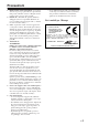 Precautions 1. Urheberrechte—Außer für private Zwecke ist das Aufnehmen urheberrechtlich geschützten Materials ohne die Zustimmung des Rechteinhabers strafbar. 2. Sicherung—Die Sicherung im Inneren des Gerätes darf niemals vom Anwender gewartet werden. Wenn sich das Gerät nicht einschalten lässt, verständigen Sie bitte Ihren Onkyo-Händler. 3. Pflege—Hin und wieder sollten Sie das Gerät mit einem weichen Tuch abstauben.