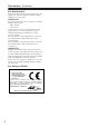 Precautions 1. Recording Copyright—Unless it’s for personal use only, recording copyrighted material is illegal without the permission of the copyright holder. 2. AC Fuse—The AC fuse inside the unit is not userserviceable. If you cannot turn on the unit, contact your Onkyo dealer. 3. Care—Occasionally you should dust the unit all over with a soft cloth. For stubborn stains, use a soft cloth dampened with a weak solution of mild detergent and water. Dry the unit immediately afterwards with a clean cloth.